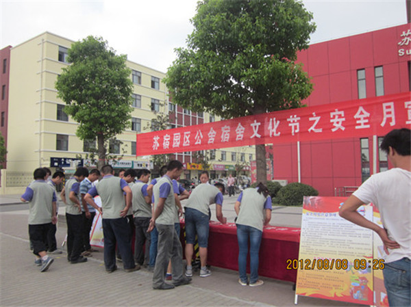 8月8日上午,在園區(qū)人才市場廣場開展“園區(qū)公舍宿舍文化節(jié)”活動,本次活動通過展板、簽名等形式向公舍廣大住宿職工宣講消防安全及安全用電知識,此次活動為即將開展的消防演練奠定了基礎。