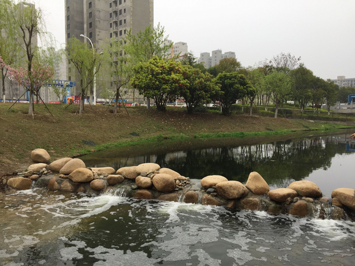 本工程造價約280萬元,主要對環(huán)形景觀帶進(jìn)行岸線規(guī)整、雨水口護(hù)砌、河道清淤,并種植沉水、挺水植物,設(shè)置景觀攔水壩及人工填料,改善河道水質(zhì),提升景觀效果。