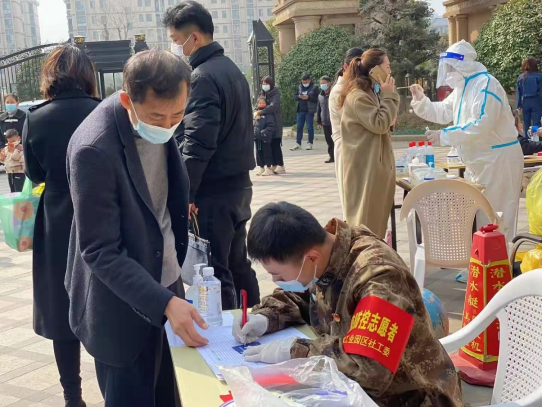 連續(xù)奮戰(zhàn)六天、未曾回家的勞社局干部楊凱歌,凌晨四點從沭陽老家趕回單位的建發(fā)公司員工張飛,身穿迷彩服的退伍軍人志愿小哥張玉,還有忙碌的公安民警,穿梭在樓上樓下敲門“掃樓”的社工,主動提供電動車、送來手機(jī)和充電寶供檢測人員使用的熱心居民……疫情的陰霾下,每一個人發(fā)出的點點微光,匯聚成了園區(qū)攜手抗“疫”、共度時艱的閃耀榮光。