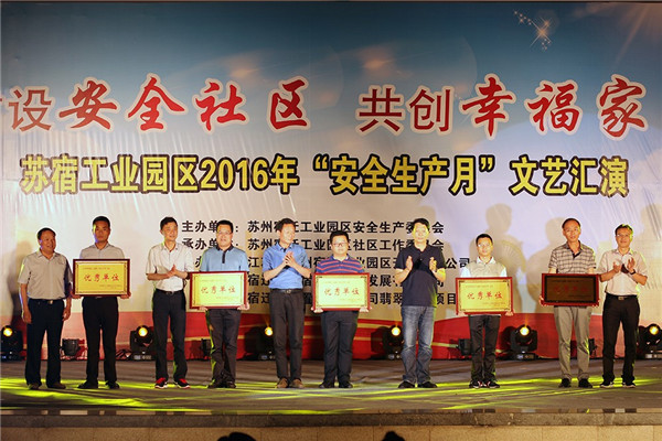 宿遷市安監(jiān)局副局長(zhǎng)李巖,工委領(lǐng)導(dǎo)許紹杰、各局辦有關(guān)負(fù)責(zé)人等出席晚會(huì),并為蘇州電瓷廠等榮獲園區(qū)2016年安全生產(chǎn)月活動(dòng)的優(yōu)秀單位頒獎(jiǎng)。